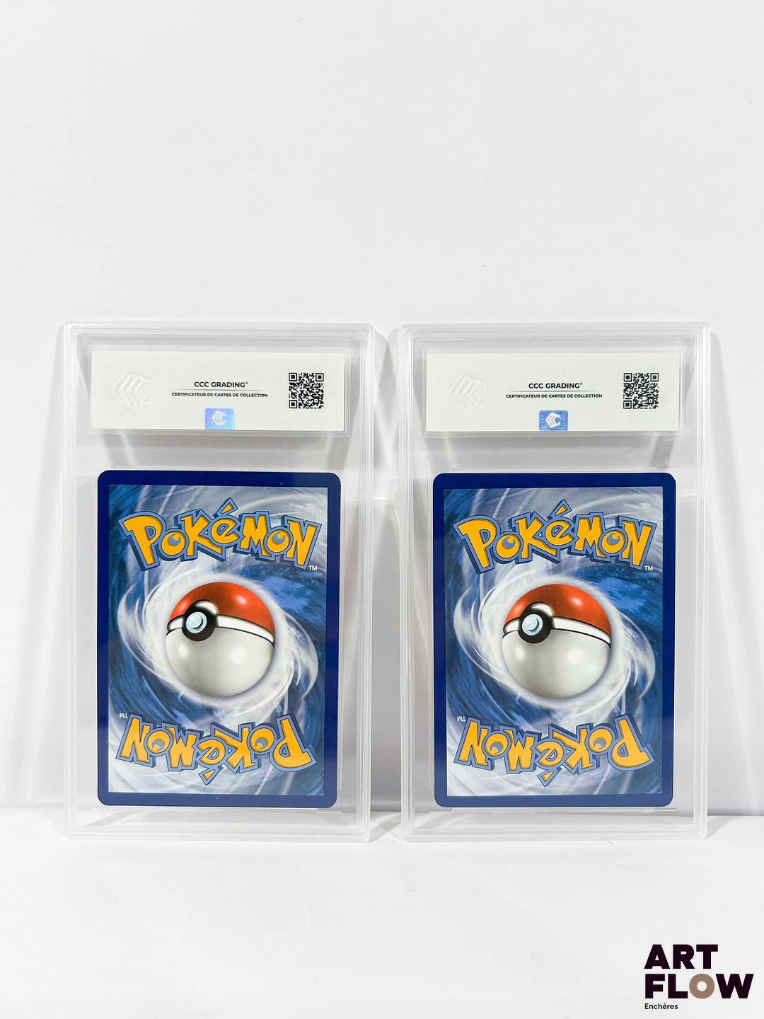 Réunion de 2 cartes Pokémon gradées du bloc de série Épée&Bouclier : – Nymphali 183/203 – Full Art – Évolution Celeste – CCC 9 (Neuf). – Arceus 165/172 – Full Art – Stars Étincelantes – CCC 10 (Neuf +). Cartes en français.