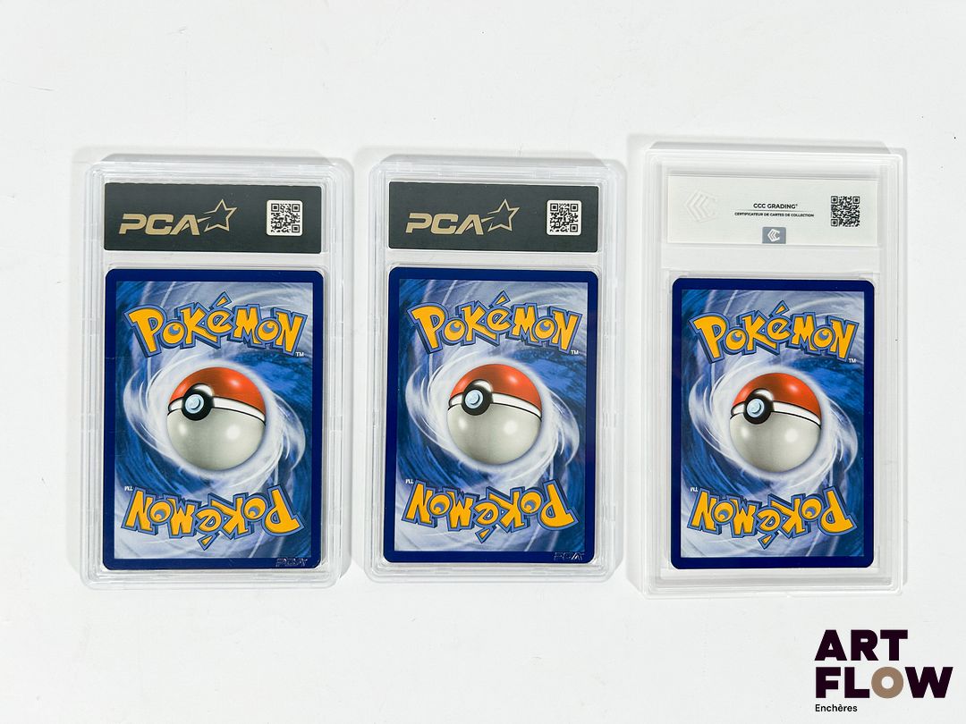 Réunion de cartes Pokémon gradées – Collection des 3 starters de base de la série XY : Évolutions (XY12). – Dracaufeu Ex – Tortank Ex – Florizarre Ex Cartes en français.