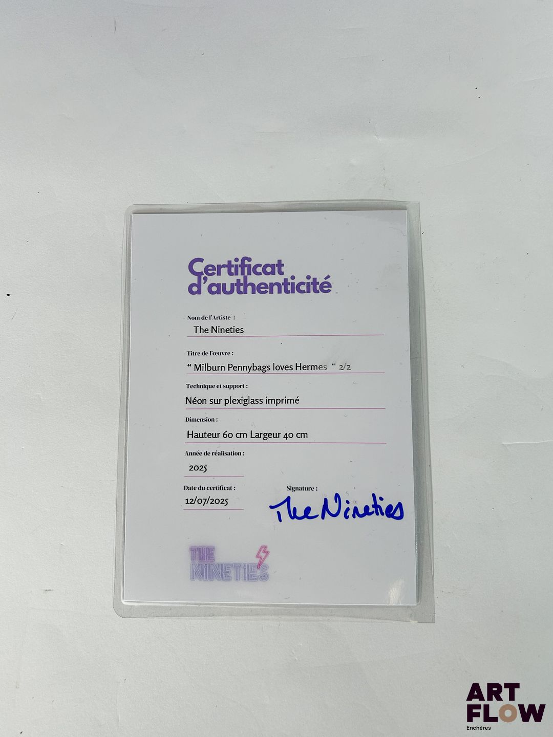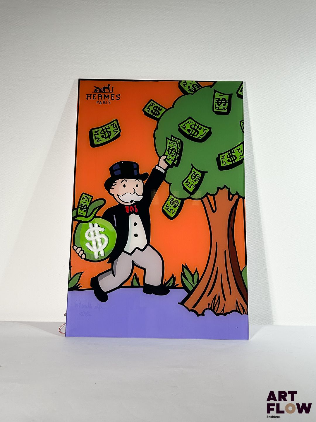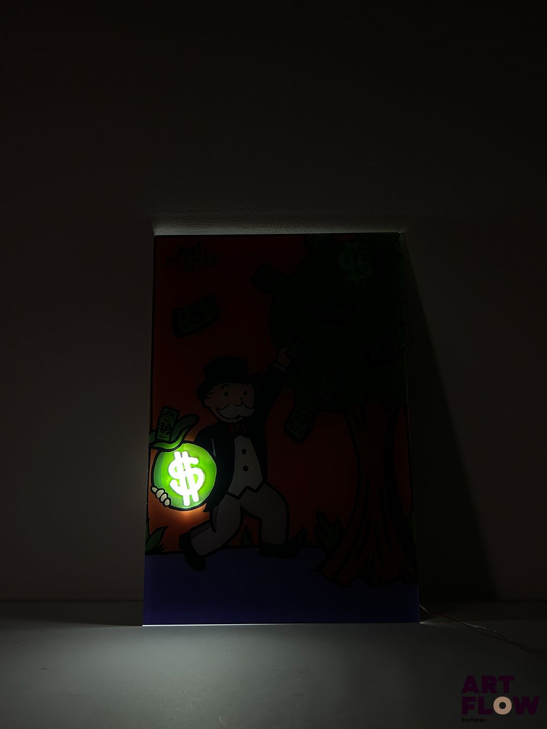 The Nineties Mr Monopoly X Hermès Technique mixte Néon sur plexiglass. Edition limitée, numérotée 2/2, signée, avec certificat d’authenticité. Avec son alimentation murale. Dimensions maximales : 60 x 40 cm
