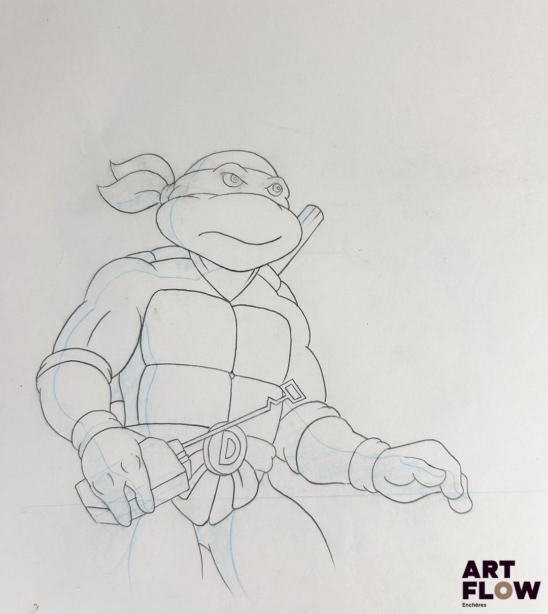 Tortues Ninja (Ninja Turtles) Donatello Dessin représentant Donatello s’apprêtant à combattre Animé américain d’après la série Teenage Mutant Ninja Turtles créée par Kevin Eastman et Peter Laird « Les Ninja Turtles sont quatre frères mutants entraînés dans l’art du ninjutsu par leur maître Splinter. Leonardo, Michelangelo, Donatello et Raphael se distinguent chacun par leur personnalité et leur arme de prédilection, mais partagent courage, esprit d’équipe et sens de la justice. Ensemble, ils protègent New York des criminels et des forces du mal tout en vivant des aventures épiques et pleines d’humour. » Dimensions : 26,5 x 31,5 cm